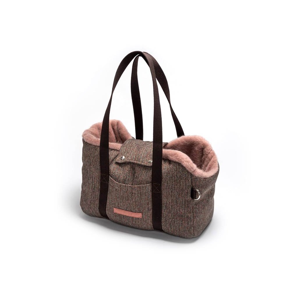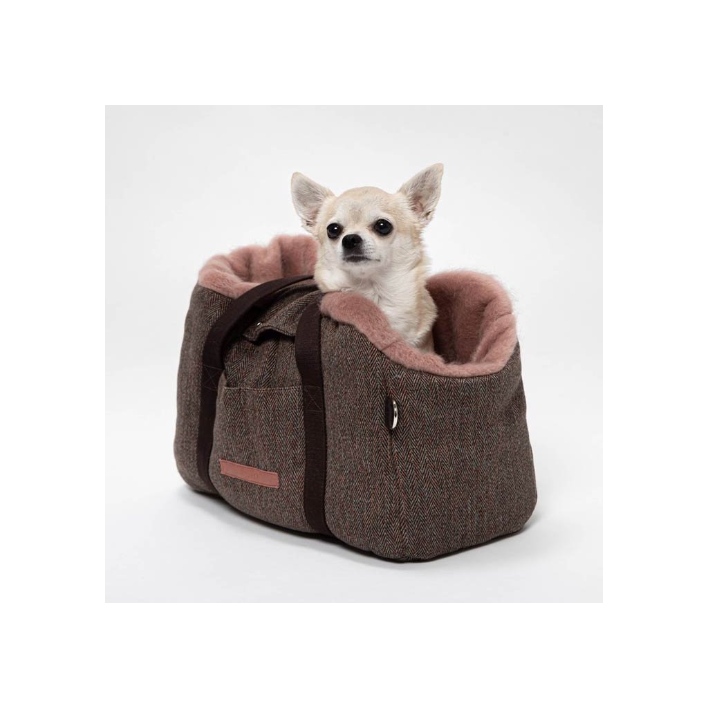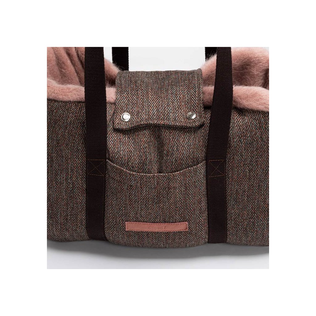 Luxusní cestovní taška pro psy. Ruční výroba v Německu.Módní cestovní taška Milano Herringbone Brown od německé manufaktury Cloud7 je vhodná pro psy až do 7 kg. Váš chlupáč si bude užívat maximální komfort, ať budete v práci nebo na cestách. Taška je ušitá z pevné, kvalitní látky ve vzoru rybí kosti. Různobarevná vlákna vytváří originální vzhled. Taška má kapsu na drobné potřeby. Doporučujeme také pro štěňata. Lze prát v pračce.