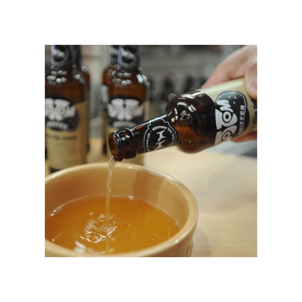 „Pivo“ pro psy Bottom Sniffer obsahuje pampelišku a lopuch, které tvému psovi dodají pořádnou dávku energie. Bez alkoholu a bublinek.