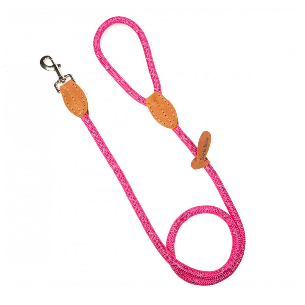 Lanové vodítko pro psy z lana (tzv. kulaté vodítko), s reflexními a koženými prvky.Lanové vodítko od anglické značky Doodlebone je spolehlivé silné vodítko vhodné pro každodenní venčení. Pevné vnitřní lano je obaleno odolným nylonem, do kterého je protkán reflexní proužek. Vodítko má zesílené šití a elegantní prvky z pravé kůže. Vyhotovené je v solidní šíři 9 nebo 12 mm.