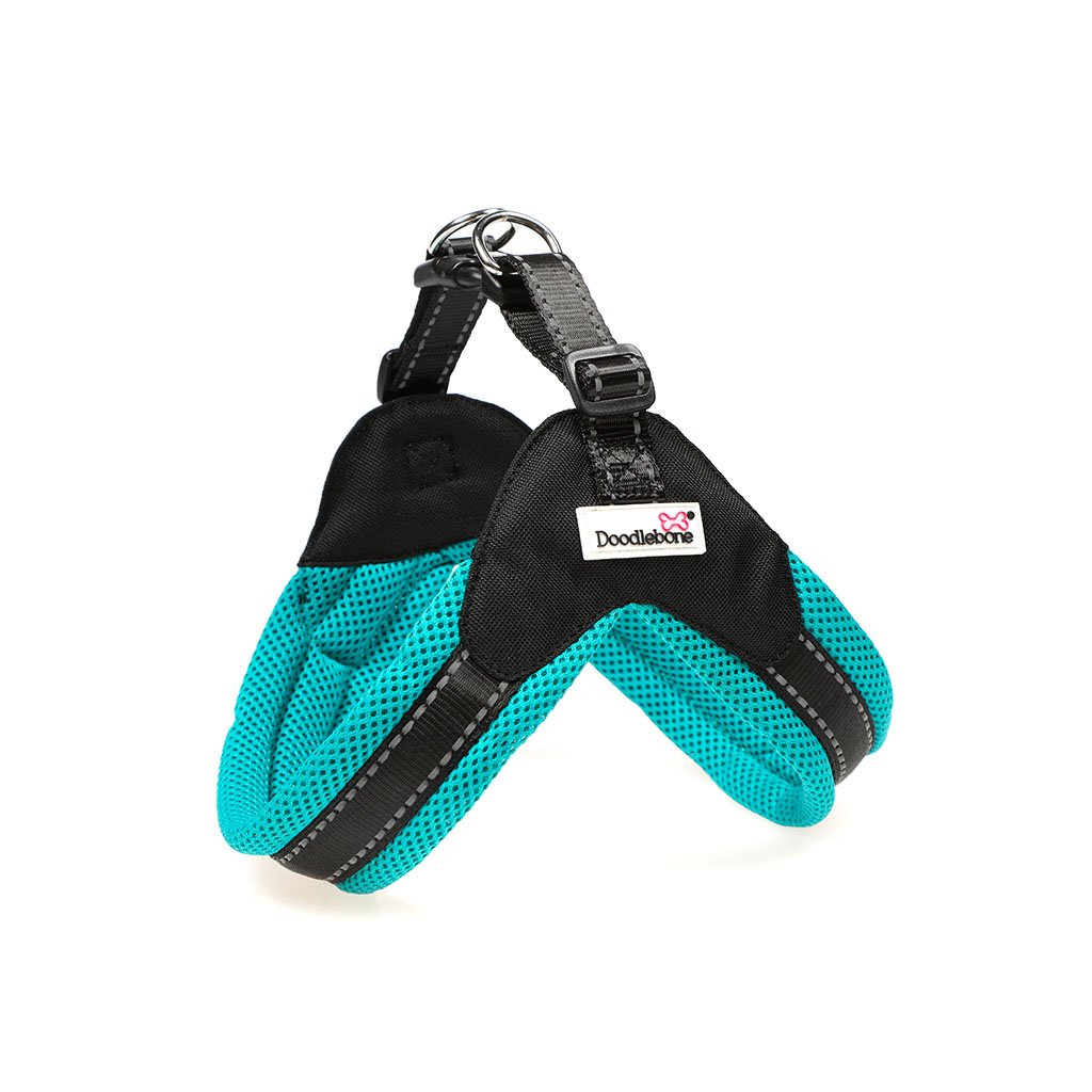 Postroj pro psy.Postroj Boomerang od Doodlebone je jednoduchý postroj, který nasadíte během okamžiku. Stačí položit na zem, nechat psa vstoupit předními nohami, vytáhnout postroj nahoru a zapnout plastovou přezku. To je všechno!