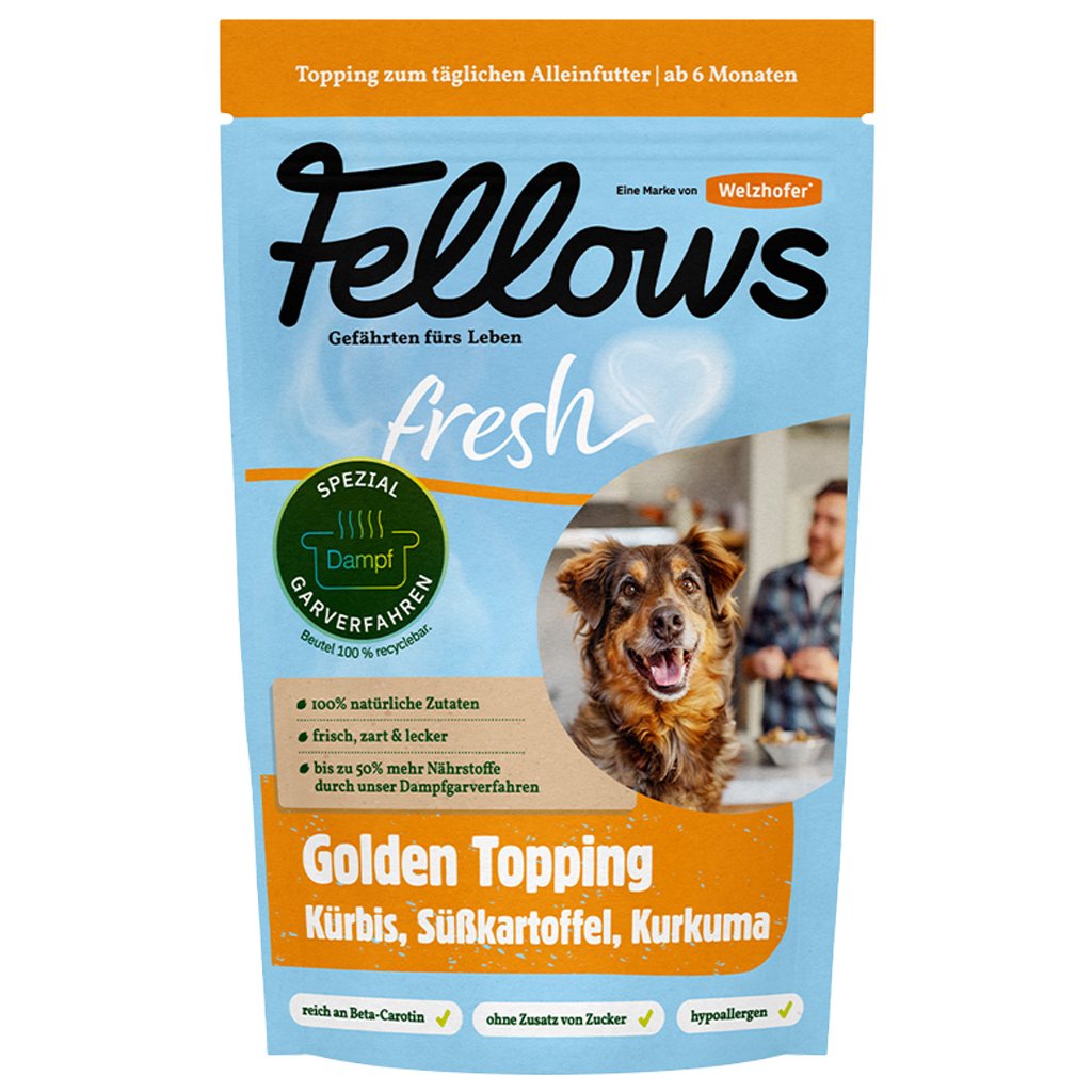 Golden Topping od Fellows vnáší do každého jídla čistou přírodu, zatímco přináší rozmanitost do jídelníčku vašeho psa. Golden Topping vykouzlí neskrývanou radost díky jemně dušené receptuře s nejlepšími ingrediencemi, jako jsou sladké brambory, dýně, mrkev, rakytník a čekanka.