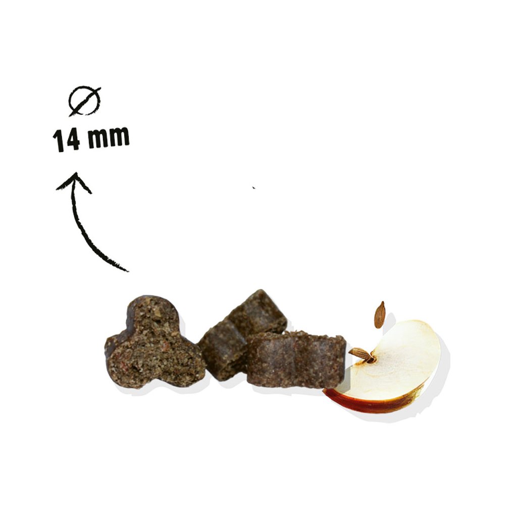Doplněk výživy pro psy. Bez obilovin a lepku.Tyto pamlsky byly speciálně vyvinuty pro psy s citlivým zažíváním. Podporují správné trávení a dobrou kondici vašeho čtyřnohého přítele. Ovocná a na pektiny bohatá jablka poskytují lahodnou chuť, kterou psi milují, zatímco bohaté proteiny z hmyzu podporují trávení. Pamlsky jsou doplněny o vysoce kvalitní vlákninu a nabízejí přesně tu správnou recepturu, která se postará o rovnováhu v bříšku vašeho psa. Pamlsky samozřejmě mají bezobilné složení.