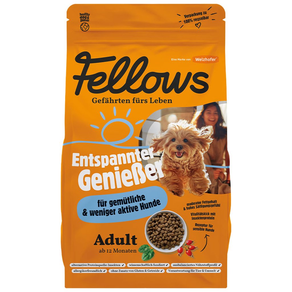 Kompletní krmivo pro dospělé psy všech velikostí s nízkou aktivitou. Neobsahuje lepek, umělé příchutě, konzervanty ani barviva.Řada krmiva Entspannter Genießer je ideální pro psy, kteří si užívají života plnými doušky - ať už jako pohodáři na gauči, anebo při procházkách v městském parku. Psům s nižší až střední úrovní aktivity poskytuje receptura Fellows tu správnou rovnováhu energie a živin, aby byli šťastní a zdraví.