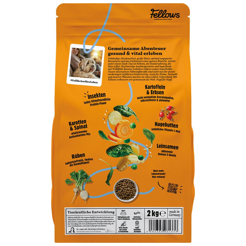 Fellows baví lidi i zvířata, podporuje aktivitu a přináší radost prostřednictvím zdravých, lehce stravitelných a především chutných receptur. Fellows kombinuje tradici a inovaci. Díky jejich zkušenostem a znalostem o síle přírodních ingrediencí se zdravá výživa psů stává hračkou. Receptury obsahují vše, co pes potřebuje, aby zůstal aktivní a zdravý. Fellows používá moderní a udržitelné suroviny, jako jsou super-potraviny a hmyzí proteiny.