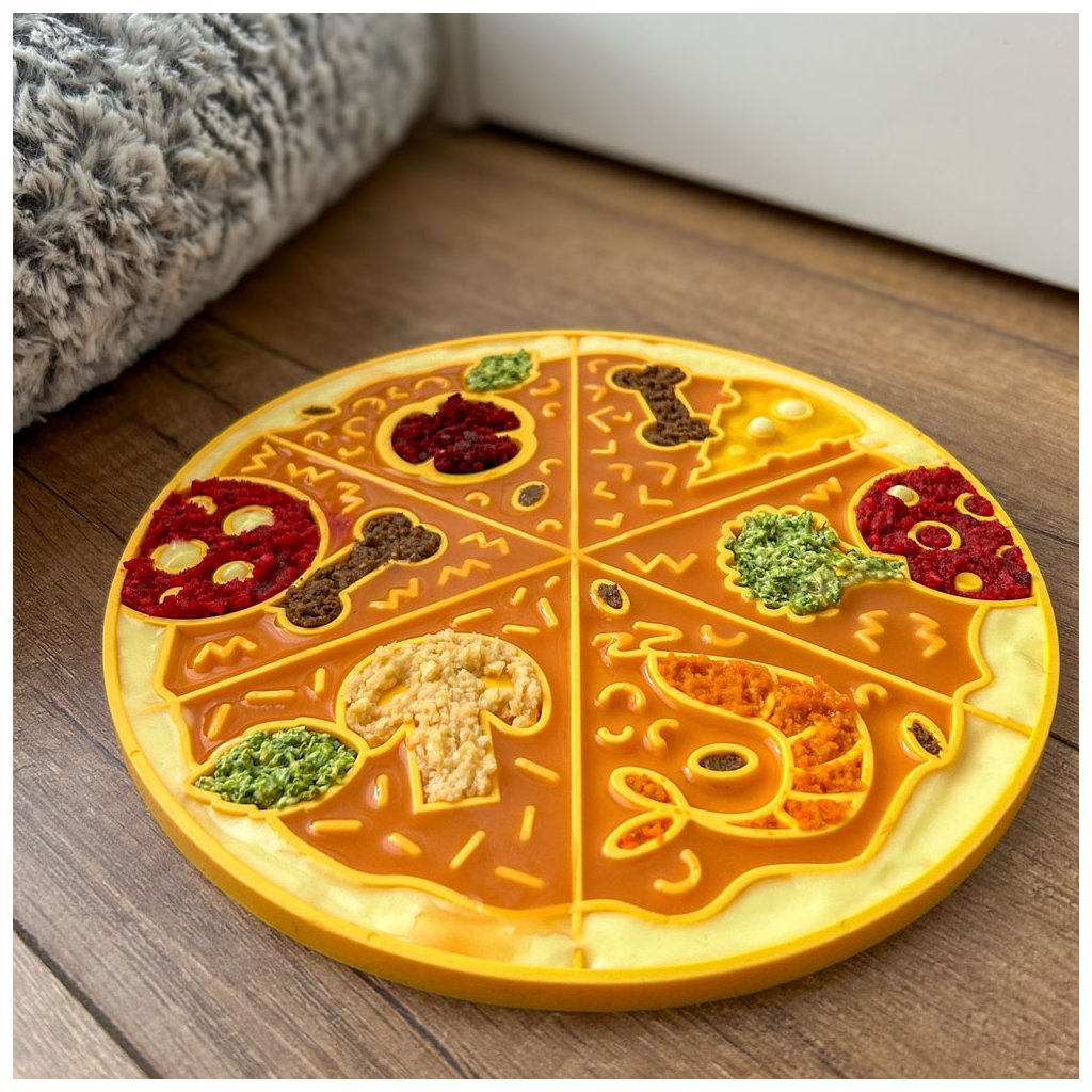Lízací podložka pro psy.Tohle není pizza, to je Fizza! Lízací podložka Fizza od Fiboo je ideální pro zabavení a uklidnění psa. Na rozdíl od některých jiných značek, Fiboo všechny svoje vychytávky vyrábí v EU. Na lízací podložku můžete připravit vše, co má váš pes rád - například konzervu, paštiku nebo arašídové máslo s ovocem. Vaší fantazii se meze nekladou! Prodlužuje dobu, kterou pes stráví u jídla, čímž předchází zažívacím problémům.