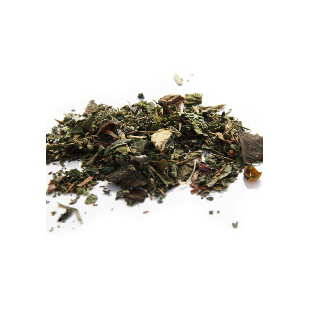 Lopuch, pampeliška, lněné semínko, kopřiva, mořská řasa, rooibos, konzervanty: sorbát draselný a benzoát sodný.