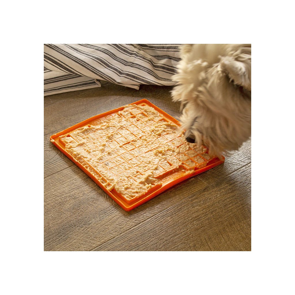 Lízací podložka pro psy.Podložka Lickimat Playdate má přihrádky ve tvaru čtverců. Doporučujeme pro kašovité a měkké jídlo, jako je konzerva, měkké kousky masa, jogurt nebo arašídové máslo.