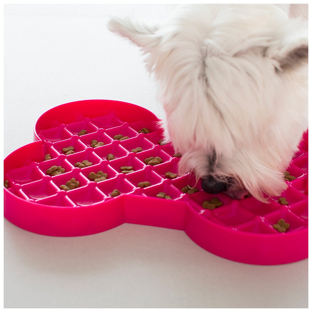 Zpomalovací miska pro psy.Zhltne váš pes večeři za pár vteřin? Zpomalovací miska SloDog od LickiMat dokáže dobu, po kterou si váš vychutnává své oblíbené jídlo, prodloužit na dlouhé minuty. Miska SloDog zá předchází žaludeční nevolnosti, nadýmání a zvracení. Ideální nejen pro podávání granulí. V prodeji v různých barevných variantách.