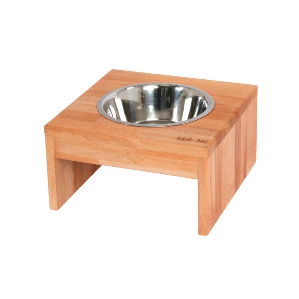 Miska pro psy na dřevěném podstavci. Ruční výroba v České republice.Takhle má vypadat psí bar! Misky na stojanech z tvrdého bukového dřeva vyrábějí šikovní truhláři z malé středočeské manufaktury MA-NU. Nerezové misky jsou umístěné na podstavci, který psovi poskytuje komfort, zatímco pije anebo si vychutnává svoje oblíbené jídlo. Navíc zkrášlí váš interiér.