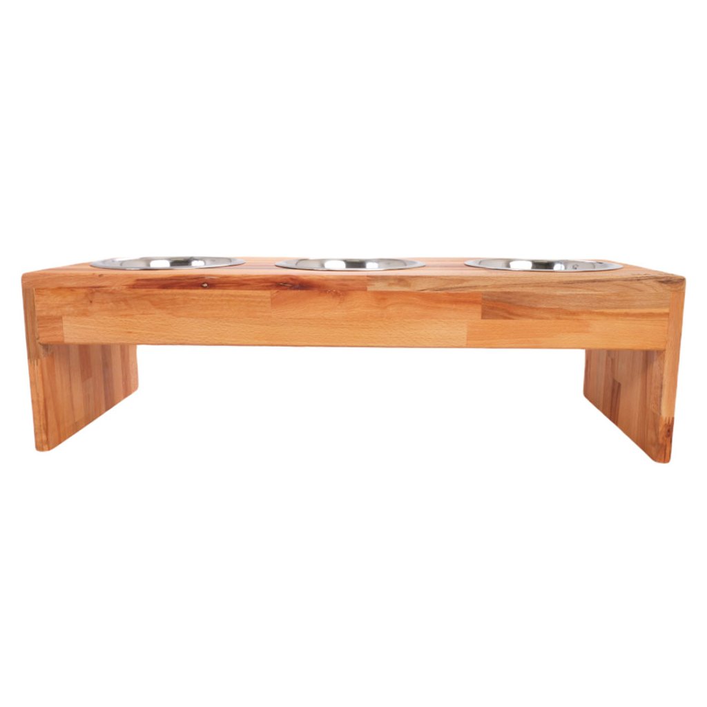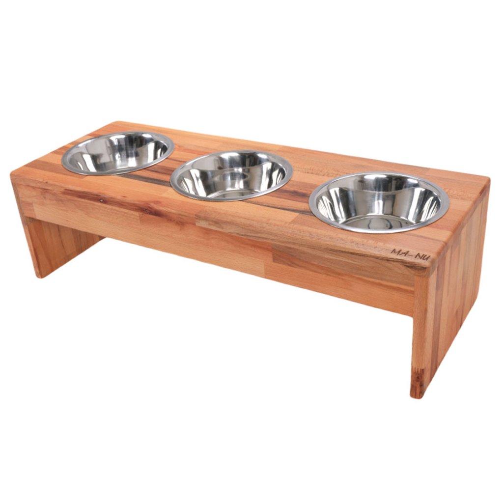 Miska pro psy na dřevěném podstavci. Ruční výroba v České republice.Takhle má vypadat psí bar! Misky na stojanech z tvrdého bukového dřeva vyrábějí šikovní truhláři z malé středočeské manufaktury MA-NU. Nerezové misky jsou umístěné na podstavci, který psovi poskytuje komfort, zatímco pije anebo si vychutnává svoje oblíbené jídlo. Navíc zkrášlí váš interiér.
