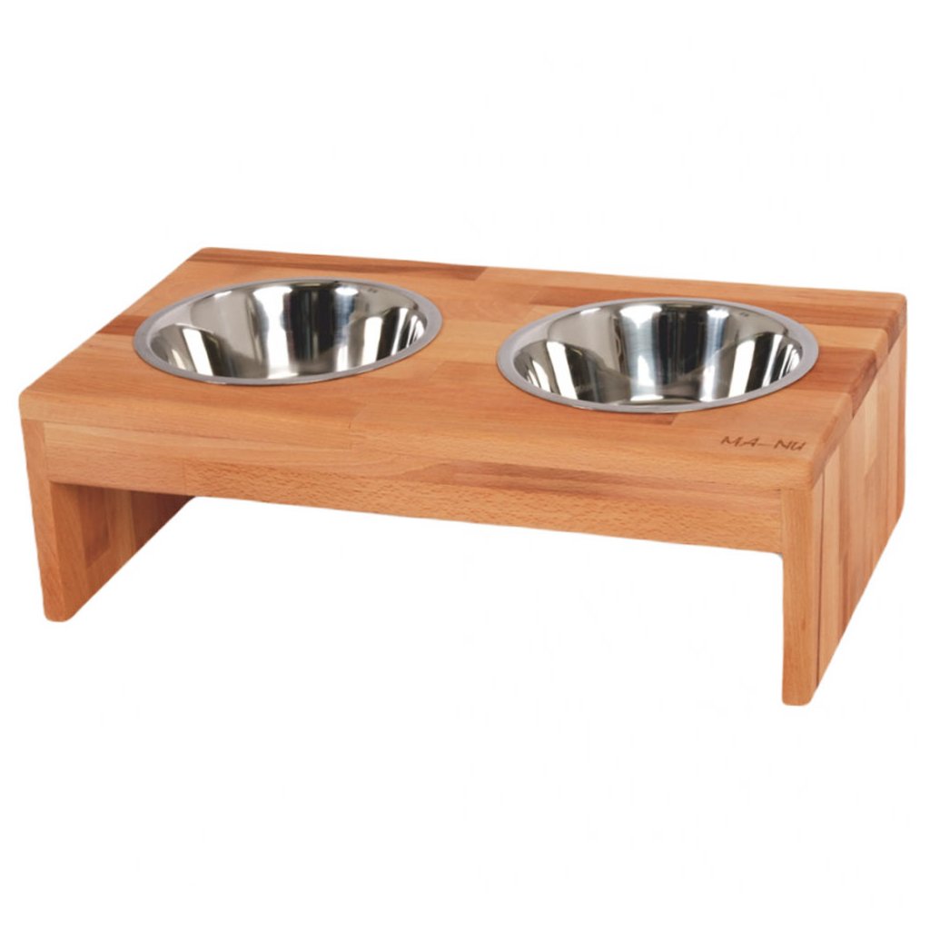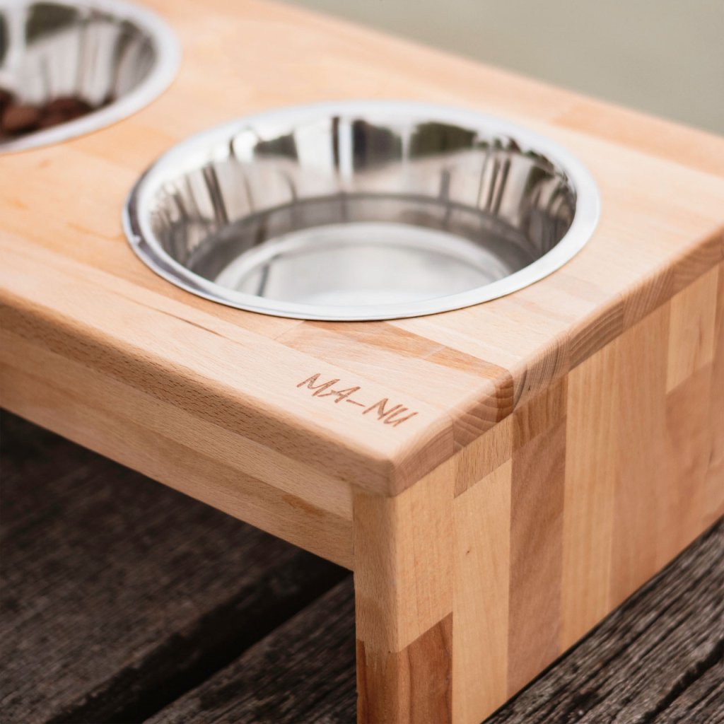 Miska pro psy na dřevěném podstavci. Ruční výroba v České republice.Takhle má vypadat psí bar! Misky na stojanech z tvrdého bukového dřeva vyrábějí šikovní truhláři z malé středočeské manufaktury MA-NU. Nerezové misky jsou umístěné na podstavci, který psovi poskytuje komfort, zatímco pije anebo si vychutnává svoje oblíbené jídlo. Navíc zkrášlí váš interiér.