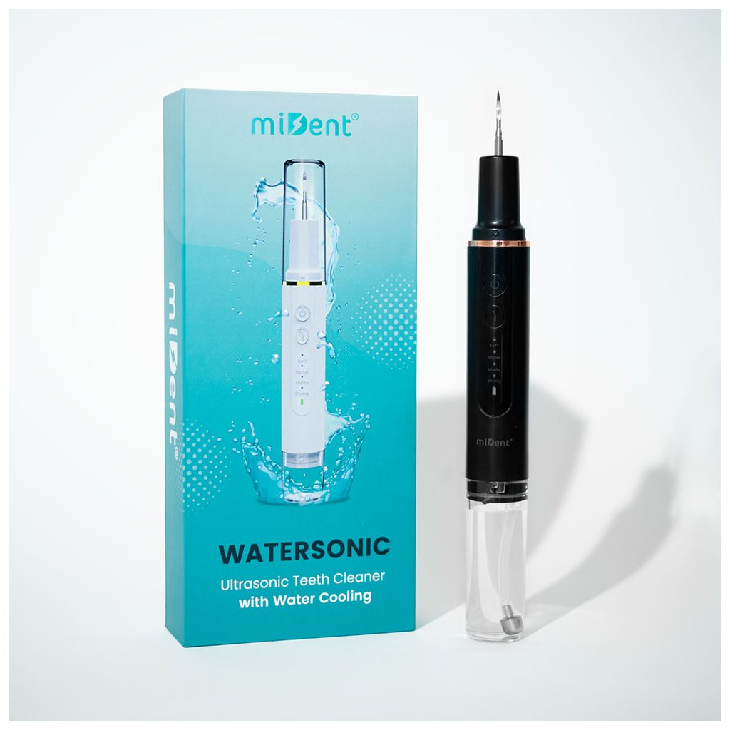 Elektrický ultrazvukový (ultrasonický) čistič zubů „zubní kartáček“ pro psy. S vodním chlazením.Water Sonic od české značky MiDent je elektrický ultrazvukový čistič zubů pro psy, tzv. elektrický zubní kartáček pro psy na domácí použití. Water Sonic rychle odstraňuje usazený plak, kámen a skvrny na zubech, zatímco je 100 % bezpečný. Při kontaktu s dásní se kartáček okamžitě vypne. Navíc přináší novou technologii chlazení vodou AquaCooling™. Díky ní můžete bezpečně pracovat s maximálním výkonem u vás doma. Silný proud vody navíc oplachuje oblast zubů a pomáhá odstraňovat nečistoty.