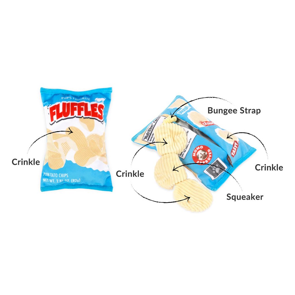 Hračka pro psy. Vyrobeno z recyklovaných materiálů.Každý den teď bude cheat day! Oslaďte život vašemu chlupáčovi s originální kolekcí plyšových hraček Snack Attack od kalifornské značky P.L.A.Y. Čeká na něj mlsání bez výčitek: Lahodná Pizza Puppy-roni, Chipsy, osvěžující Cola a Točená zmrzlina. Vybírat můžete ze samostatných hraček, anebo zvolit dárkový set, ve kterém najdete i Lízátko. V prodeji běžné velikosti hraček anebo Mini velikosti pro štěňata a malé psy.