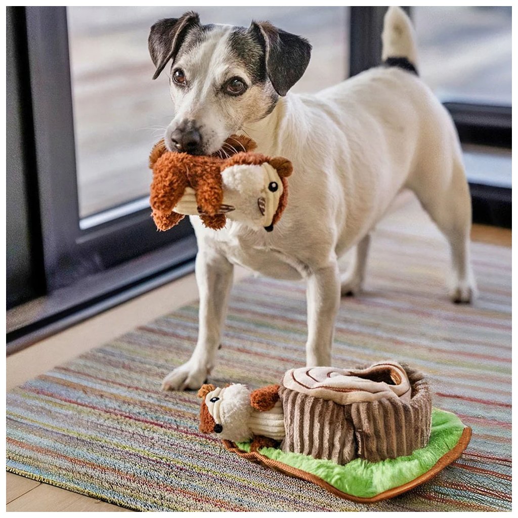 Hračka pro psy. Vyrobená z recyklovaných materiálů.Chlupáči, hledáš nová dobrodružství? Tady štěkáš na správný strom. Značka P.L.A.Y. přichází s rozmarnou kolekcí Forest Friends, která je inspirována nejoblíbenějšími lesními zvířátky: zajícem, ježkem, liškou, mývalem a čipmankem. Váš pes teď může okusit divokou přírodu a přitom zůstane v bezpečí domova.