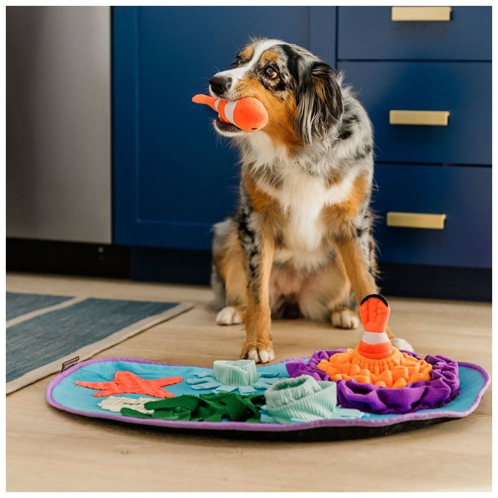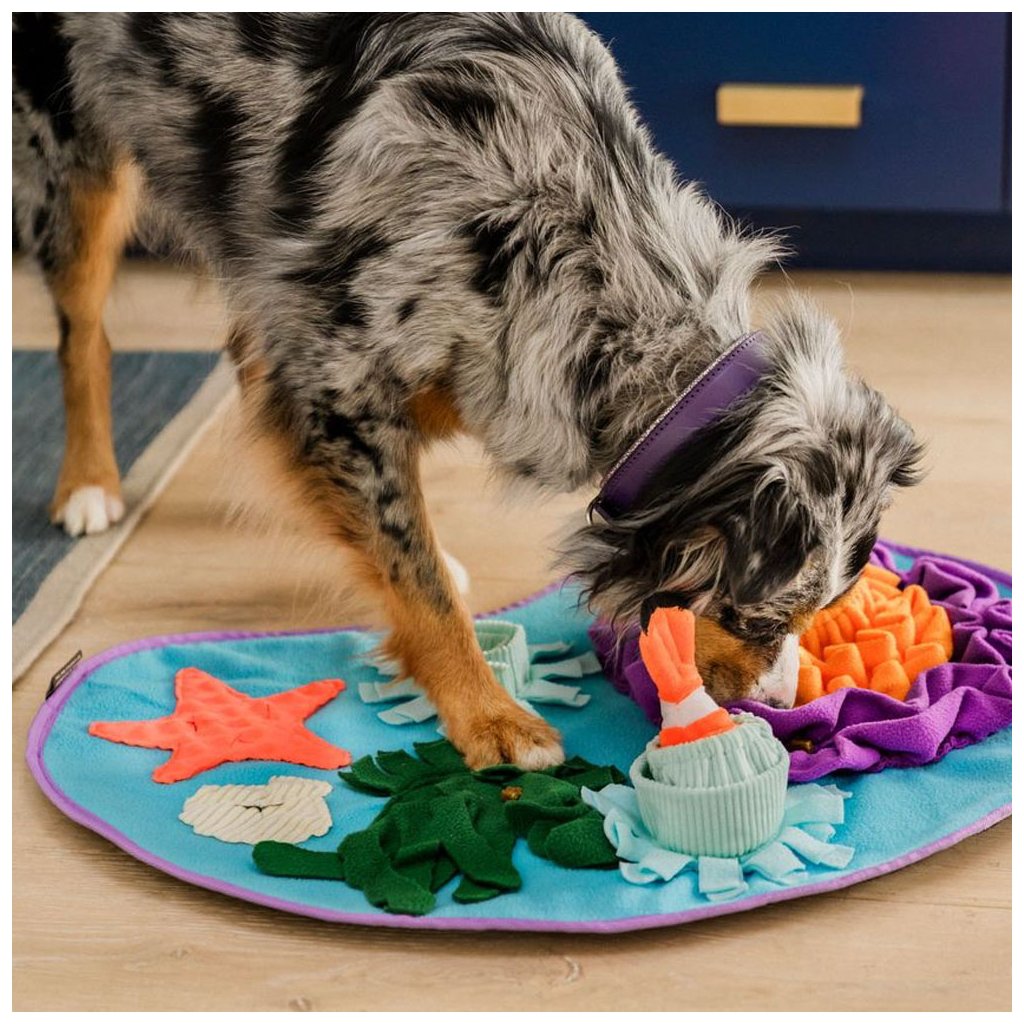 Čmuchací dečka pro ukrytí pamlsků, hračka pro psy.Čmuchací dečky jsou úžasným pomocníkem, kdykoliv potřebujete zabavit psa a zaměstnat jeho přirozené smysly. Jednoduše poschovávejte oblíbené drobné pamlsky vašeho psa pod třásně a do kapes. Trénujte také trpělivost a koncentraci vašeho psa. Řekněte psovi, ať si sedne a dovolte mu sledovat vás, zatímco pamlsky schováváte. Jakmile máte dečku připravenou, řekněte psovi Hledej a zábava začíná!