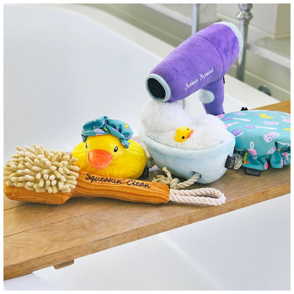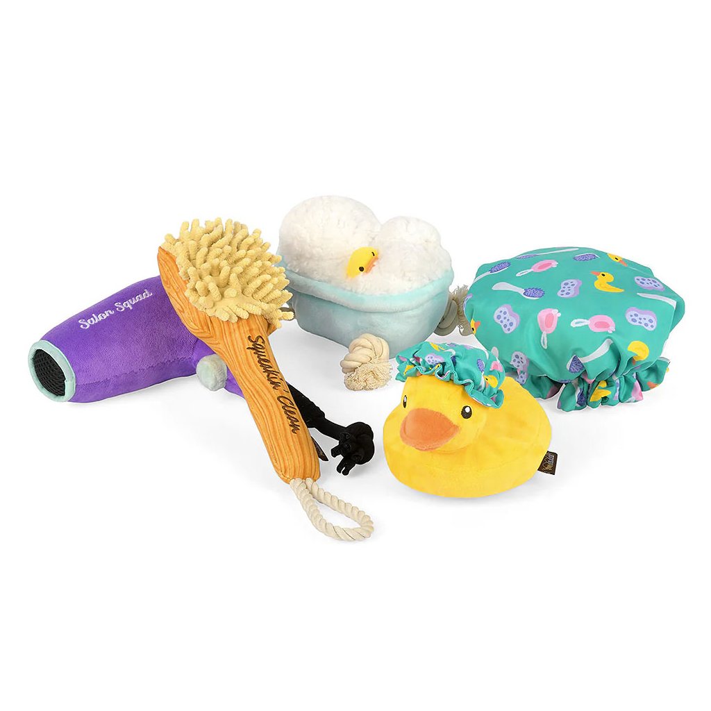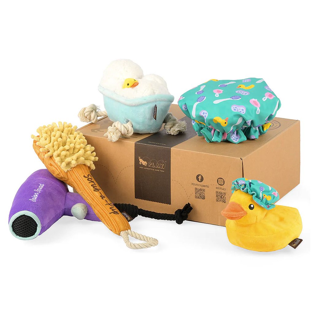 Chlupáči, je čas koupání! Jestli sis myslel, že je koupání vopruz, tak teď změníš názor! Značka P.L.A.Y. přichází s novou řadou eko plyšových hraček pro psy Splish Splash, která je inspirována každodenní péčí o psa. Čeká na tebe Kachnička, Kartáč, Fén a nechybí ani Koupací čepice. V dárkovém setu exkluzivně získáš Vanu s pěnou.