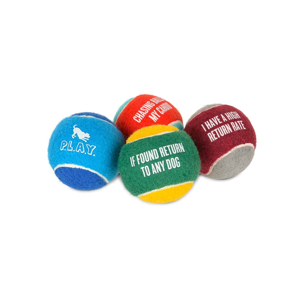Bezpečné tenisové míčky pro psy.Udělejte z běžného aportování zábavu ve stylu P.L.A.Y.! Tenisové míčky P.L.A.Y. jsou neabrazivní, takže neobrušují chrup psa. Ideální pro všechny míčkové maniaky. Míčky pískají a plavou na vodě. Každý z nich na sobě nese vtipný text. Doporučujeme jako originální dárek pro milovníky psů a jejich chlupáče.