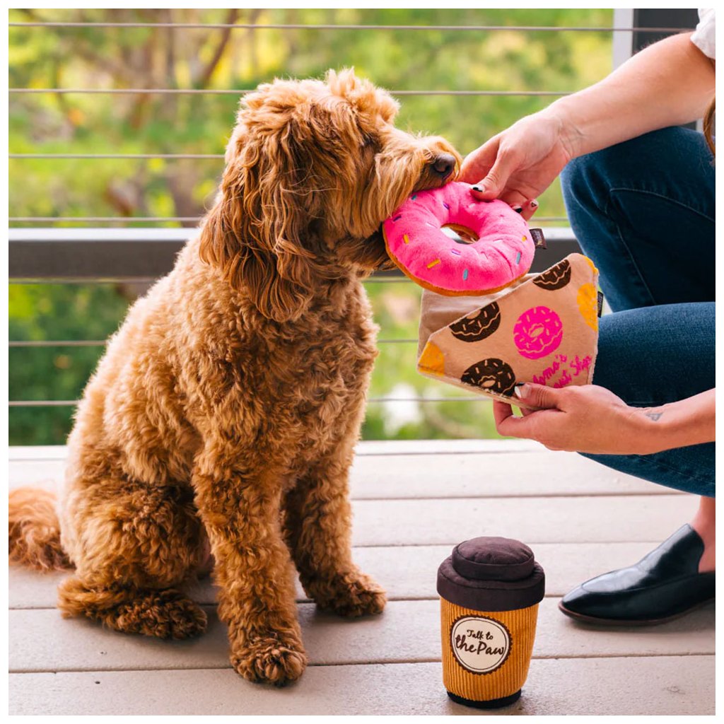Hračka pro psy. Vyrobeno z recyklovaných materiálů.Značka P.L.A.Y. přichází s kolekcí hraček Pup Café pro všechny milovníky dobré kávy a křupavého pečiva. Kolekce obsahuje Skořicový šnek, Donut a Kávu s sebou. Je to pořád málo? Zvolte dárkový set, ve kterém najdete všechny zmíněné hračky a navíc Makronky a Cookies.