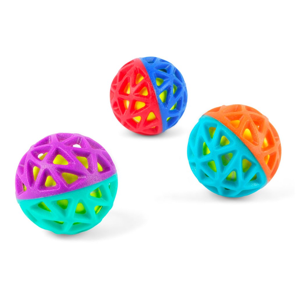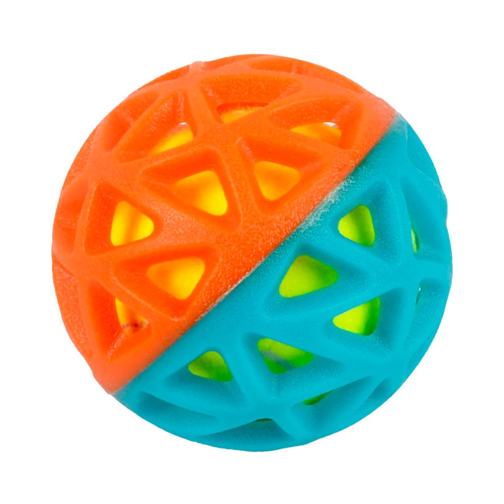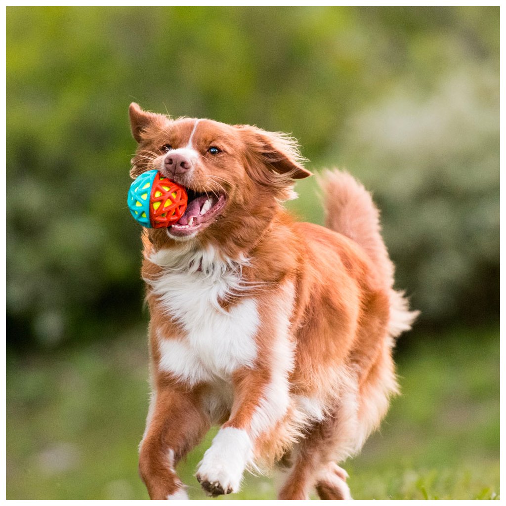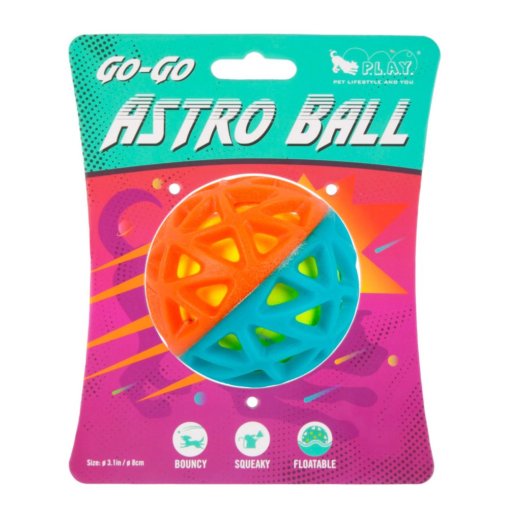 Hračka pro psy. Vyrobeno z recyklovaných materiálů.S míčkem Go-Go Astro Ball od značky P.L.A.Y. se váš ocitne jako v jiném světě plném aportování a nikdy nekončící zábavy. Váš pes bude uchvácen, až uvidí míček letět a točit se po obloze, překvapen, když se zakousne do měkké vnější vrstvy a potěšen, když rozpíská tenisový míček, který se nachází uvnitř. Plave na vodě, takže ho nikdy neutopíte. Díky dvěma výrazným barvám je míček dobře vidět na souši i na vodní hladině.
