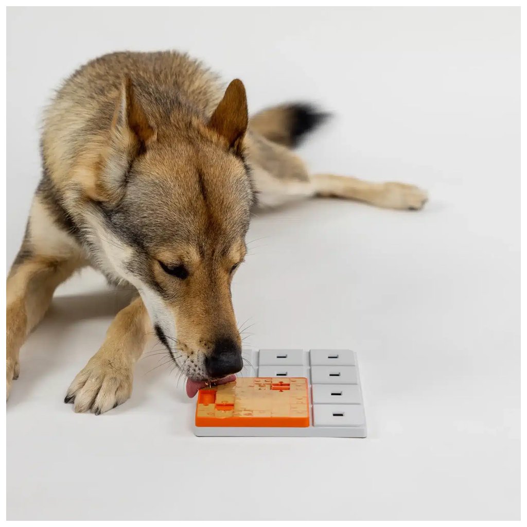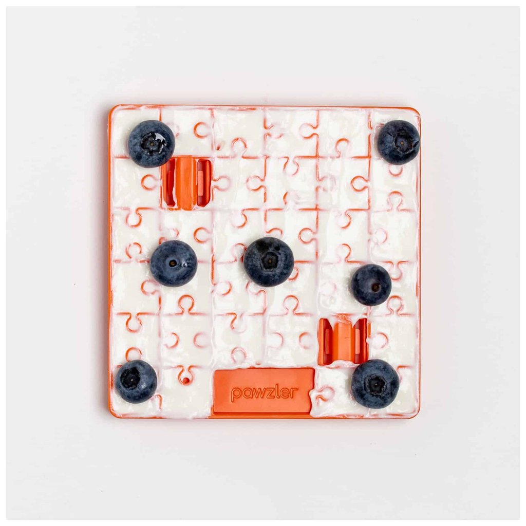 Příslušenství pro hlavolam pro psy Pawzler. Vyrobeno v Evropě z bezpečných, netoxických materiálů.Lízací podložka Pawzler Terra obsadí čtyři místa na Pawzler Hrací desce. Je skvělým doplňkem pro prodloužení doby, kterou pes stráví při řešení hlavolamu. Pes musí použít jazyk, aby pečlivě vylízal celou porci pamlsku. Použijte malou porci konzervy, paštiky, omáčky, tvarohu nebo arašídového másla.