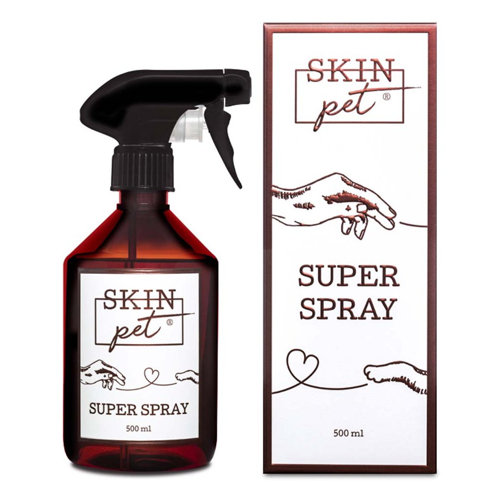 Dezinfekce pro psy a kočky. Vyrobeno v České republice.SkinPet Super Spray působí jako účinná dezinfekce, která brání rozvoji infekce a podporuje rychlé hojení ran. Díky šetrnému složení sprej neštípe, nedráždí, nezpůsobuje bolest, nealergizuje a nepoškozuje zdravou tkáň.