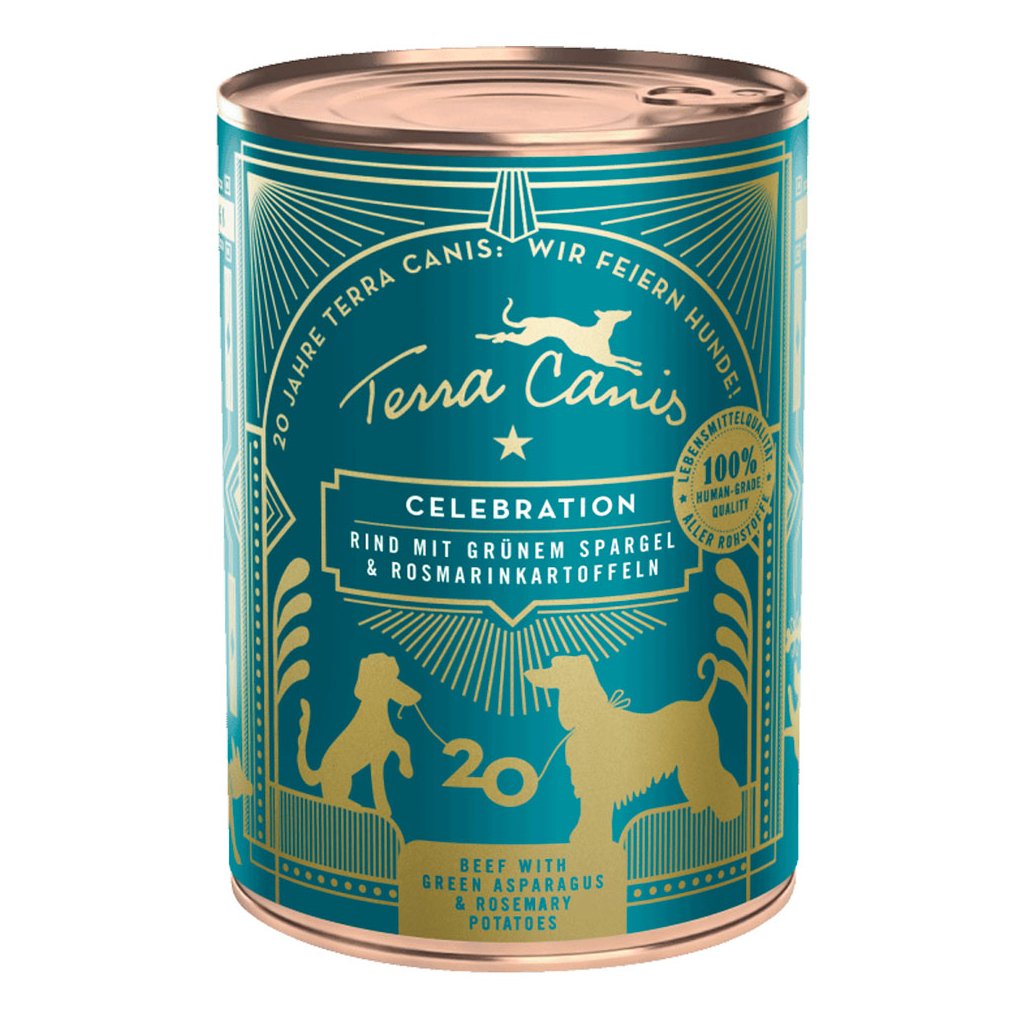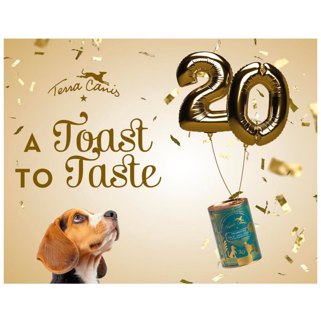 Limitovaná edice. Doplňkové krmivo pro psy. 100 % složek v potravinářské human grade kvalitě.Již dvě desetiletí je Terra Canis symbolem nekompromisní kvality, vášně a inovací. Díky stoprocentní human grade kvalitě všech surovin od samého začátku značka ve světe krmiv pro psy nastavila zcela nový standard. Terra Canis přináší krmiva, která voní, chutnají a jsou neskutečně různorodá. V rámci oslav 20 let založení značka připravila speciální menu s hovězím, zeleným chřestem a rozmarýnovými brambory a všechny chlupáče zve ke společné hostině.