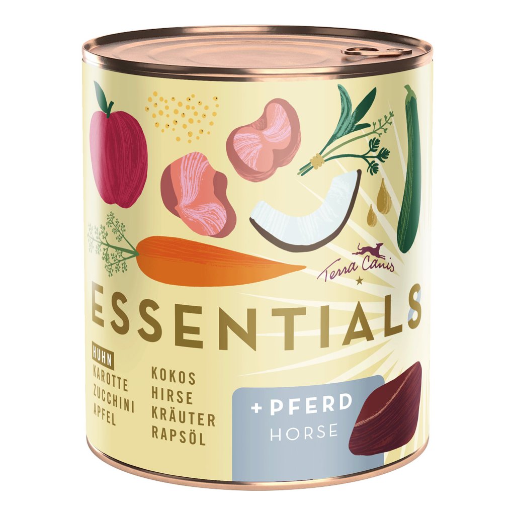 Stejně jako ostatní konzervy Terra Canis, i řada Essential 8 se připravuje ve vlastní výrobně a všechny složky jsou ve 100% potravinářské human grade kvalitě. Vyvinuto s veterináři. Bez přidaných vedlejších živočišných produktů, aromat, konzervačních látek, syntetických pojiv a cukru.