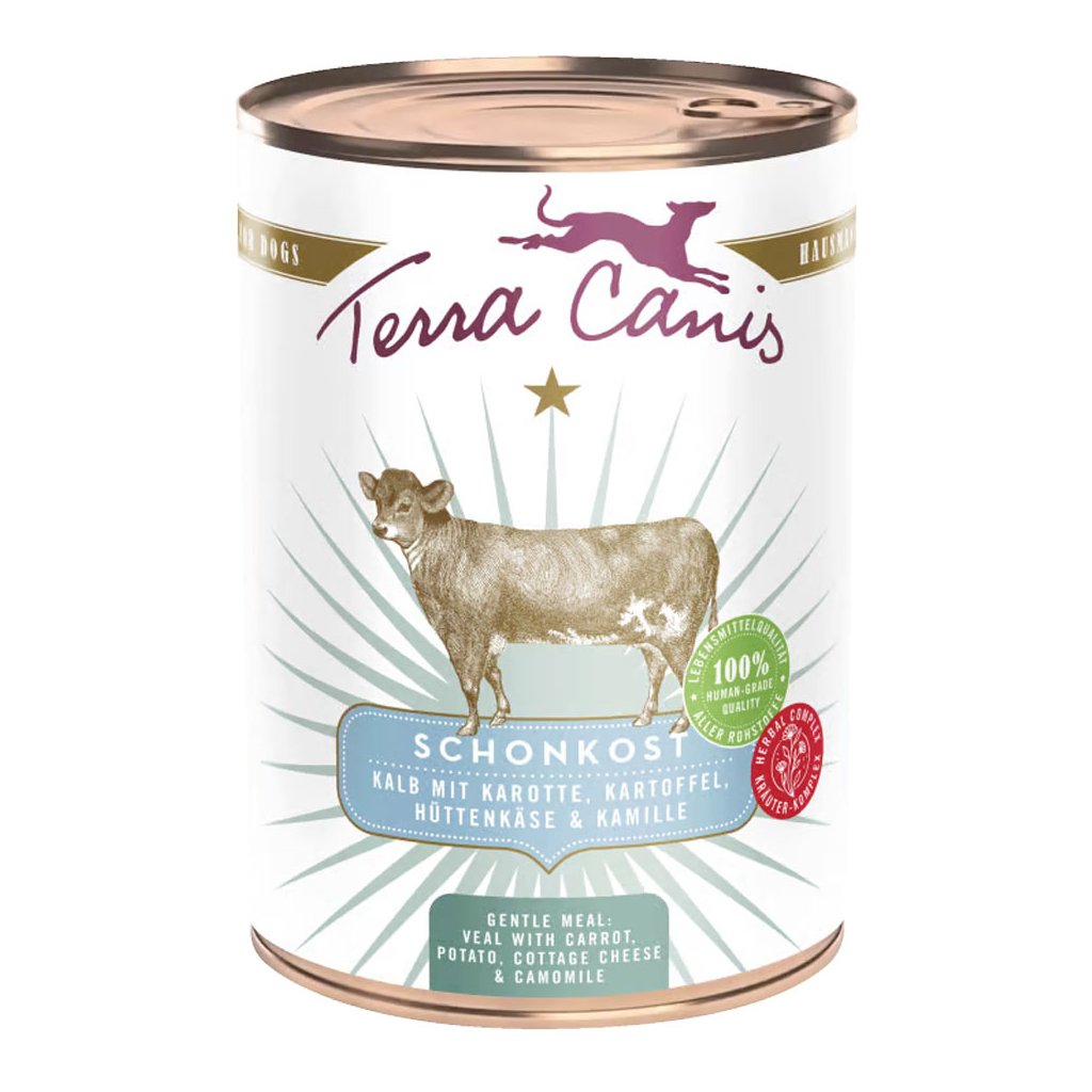 Doposud byla při zažívacích obtížích navrhována ne příliš výrazná dieta, a proto Terra Canis jako první na trhu vyvinula speciální složení konzervy, které psovi napomůže ke zklidnění a normální funkci zažívacího traktu. Speciální bezobilné dietní menu je bázi lehce stravitelných surovin, které podporují celý trávicí trakt. Pes obdrží dostatek výživy a látek, které podporují zdravou střevní flóru.