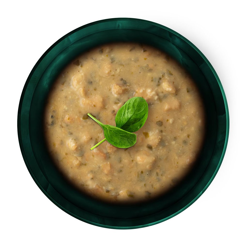 Vývar 56 %, losos 33 %, hovězí játra 5 %, glycin 2 %, ústřicové skořápky 1 %, taurin, rajčatový prášek*, špenát*, výtažek z hrušek a jablek, pivovarské kvasnice*, rybí olej, minerální látky*.