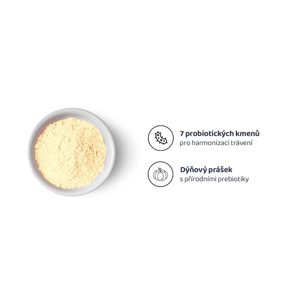 Přírodní prebiotika z dýně napomáhají probiotikům v jejich aktivitě a přispívají k optimálnímu vstřebávání živin.