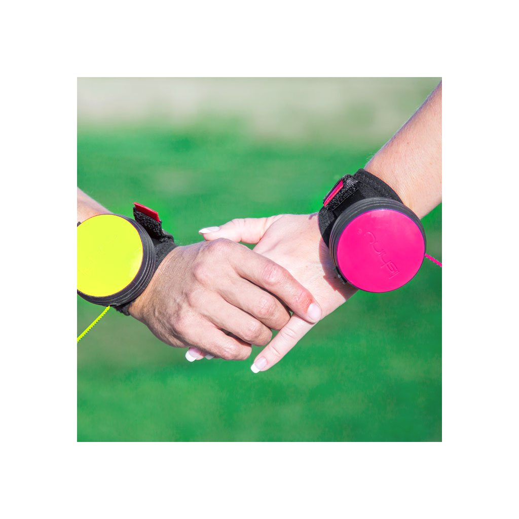Hands-free vodítko, neoprenový pásek na ruku, barevný výměnný kryt, manuál.