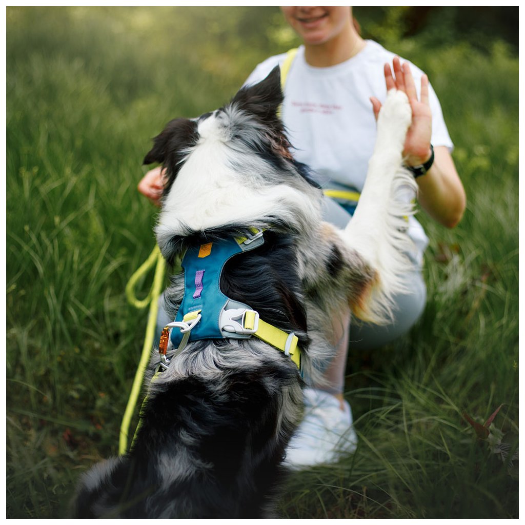 Tento všestranný postroj má dvě možnosti uchycení vodítka: hliníkový V-kroužek vycentrovaný na zádech psa pro každodenní procházky a extra silnou přední sponu, která se používá společně se zadním V-kroužkem a slouží k usměrnění psů, kteří na vodítku tahají.