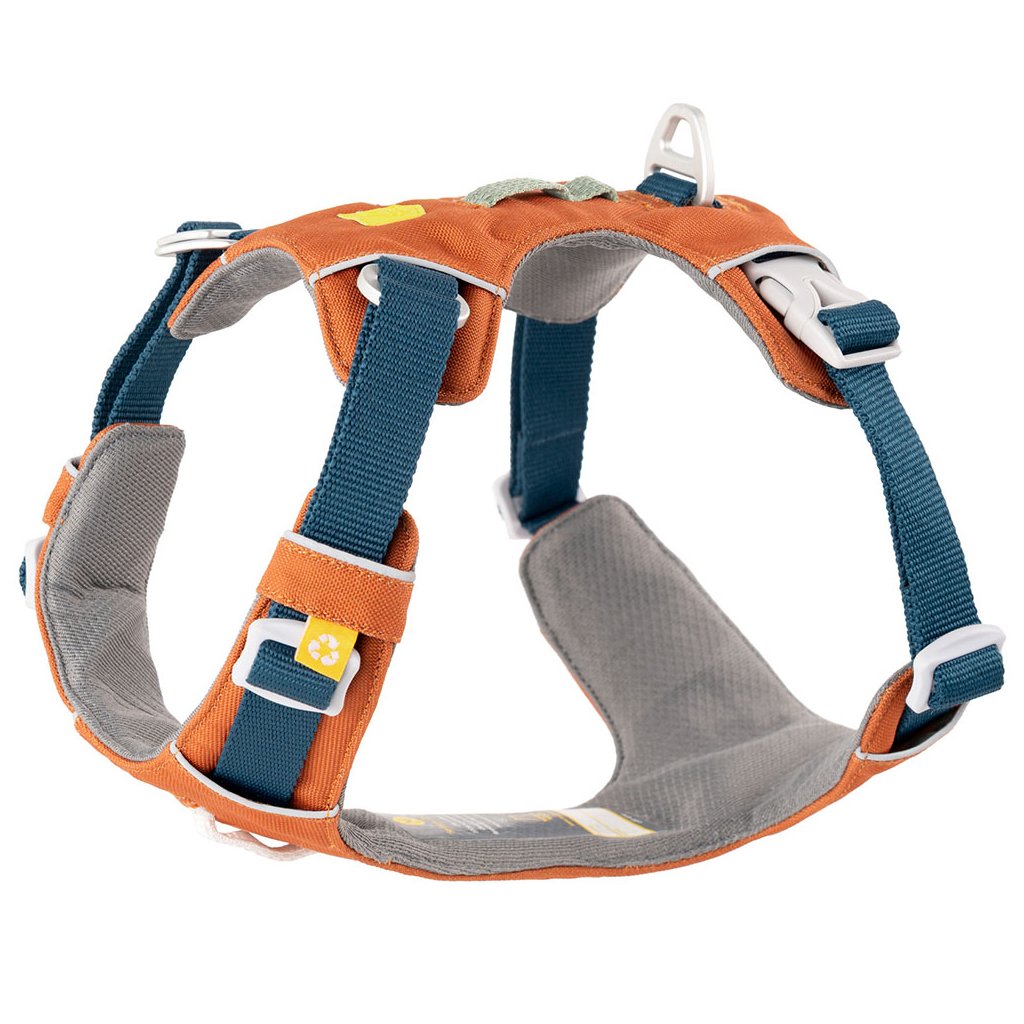 Tento všestranný postroj má dvě možnosti uchycení vodítka: hliníkový V-kroužek vycentrovaný na zádech psa pro každodenní procházky a extra silnou přední sponu, která se používá společně se zadním V-kroužkem a slouží k usměrnění psů, kteří na vodítku tahají.