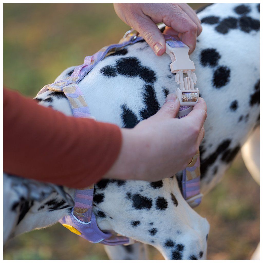 Postroj má možnost nastavení v 5 bodech, takže dobře padne i atypickým psům. Postroj lze ve spodní části prodloužit, díky čemuž předchází odřeninám a vytrhávání srsti ve slabinách pod předními nohama.